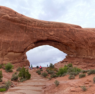 If you followed our last blog post, you’ll know that we were waiting for a new car rental in Moab, Utah. It arrived at 6PM and the first thing we did was head to Arches National Park. If you want to see the sights in the park during the day (8-4), you must have a timed entry pass. The park is open 24 hours a day, so if you come in before 8 or after 4 there’s no ranger at the entry gate and no long lines of cars waiting to get in. We drove the loop around the park stopping first at Balanced Rock. Pretty amazing!