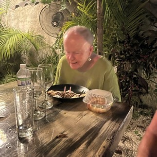 None of the folks who visited had ever been to this part of the Yucatan Peninsula before, so they were interested in seeing some of the sights. Now remember, John and Nancy have said that our nomadic life isn’t about sightseeing; it’s just living our “everyday life” as we did in Philly only in less familiar, more exotic surroundings. Our days entail enjoying coffee while reading about the decay of Western Civilization, reading a lot of books, co-finishing crossword puzzles, sitting by the pool, making dinner, or going out for long lunches or dinners. John adds doing some drawing, painting, and looking for grant opportunities and donations for his late wife's charity Mother Goose: Read to Me. Nancy loves to hit the gym to walk several miles while streaming shows on her iPad. Yes, there’s a gym in Puerto, with used Planet Fitness equipment.