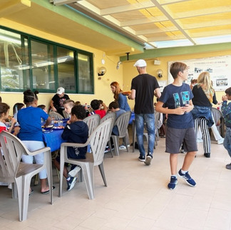But, what really made us laugh was that the outside looked almost exactly like a McDonalds with plastic play-land and kids all over the place. There was a birthday party going on with over 20 kids at a long table, talking and eating and being kids. Parents and grandparents sat at a different table and enjoyed any pizzette that the kids didn't finish.
